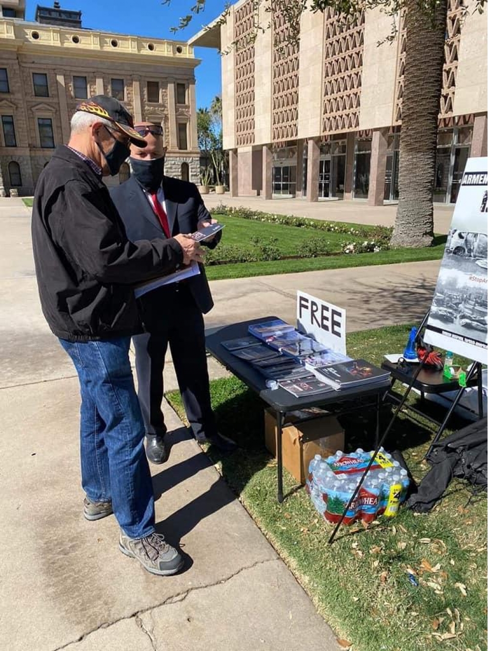 Diasporla İş üzrə Dövlət Komitəsindən "İki sahil"ə verilən məlumata görə, Arizona ştatının Kapitoli (Nümayəndələr Palatası) binası önündə – açıq səma altında gerçəkləşdirilən sərgidə erməni silahlı qüvvələrinin Xocalıda törətdikləri soyqırımı, Azərbaycan və Türkiyə ərazilərində həyata keçirdikləri digər soyqırım və terror aktlarını, 44 günlük Vətən müharibəsi dövründə Ermənistan silahlı qüvvələri tərəfindən Gəncə, Bərdə, Tərtər və digər şəhərlərin bombardman edilməsini əks etdirən fotomateriallar və kitablar nümayiş etdirilib. TASFO-nun rəhbəri Fatih Öznür sərgi ilə maraqlanan şəxslərə erməni terrorizmi, ermənilərin törətdikləri dəhşətli cinayətlər, o cümlədən Xocalı soyqırımı haqqında ətraflı məlumatlar verib.