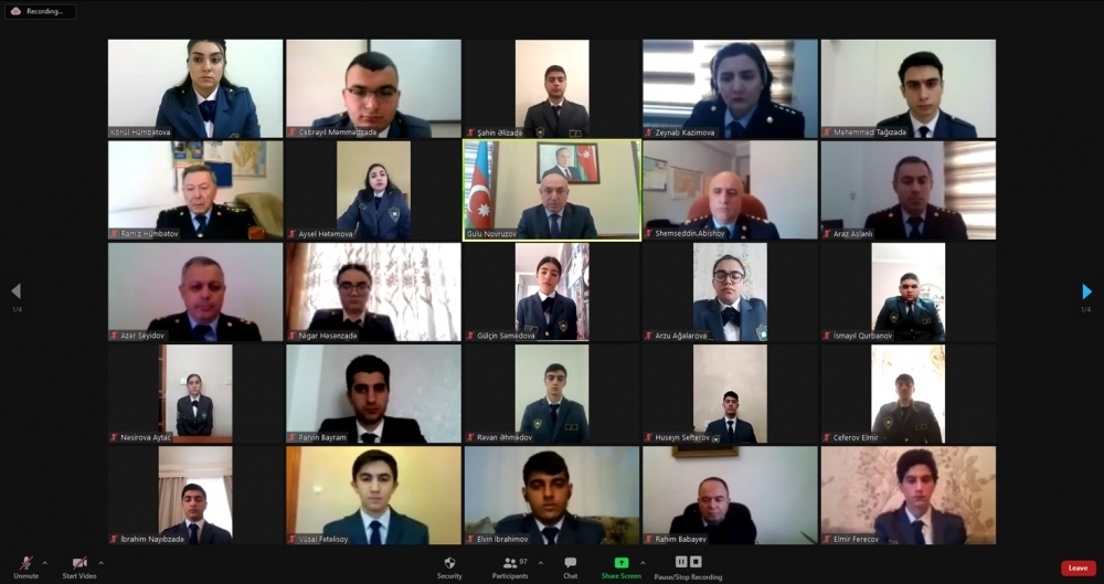 Monitorinq və qiymətləndirmə şöbəsinin rəisi, gömrük xidməti kapitanı Araz Aslanlı və “Hüquqşünaslıq” ixtisasının 3-cü kurs tələbəsi Cəbrayıl Məmmədzadə məruzə ilə çıxış edərək, Azərbaycan tarixinə ən dəhşətli və faciəli səhifələrdən biri kimi daxil olan Xocalı soyqırımının insanlıq tarixində ən qorxulu kütləvi terror aktlarından biri olduğunu bildiriblər. Xocalı soyqırımının bütün bəşəriyyətə qarşı cinayət olduğunu vurğulayan çıxışçılar bu qanlı hadisənin hüquqi və siyasi-ictimai təhlilinə toxunublar. Vurğulanıb ki, Xocalı soqırımına siyasi-hüquqi qiymət yalnız ümummilli lider Heydər Əliyev yenidən hakimiyyətə qayıtdıqdan sonra verilib.