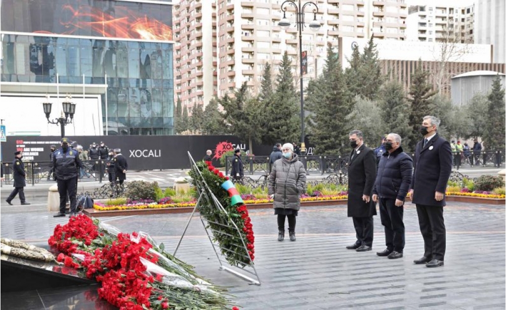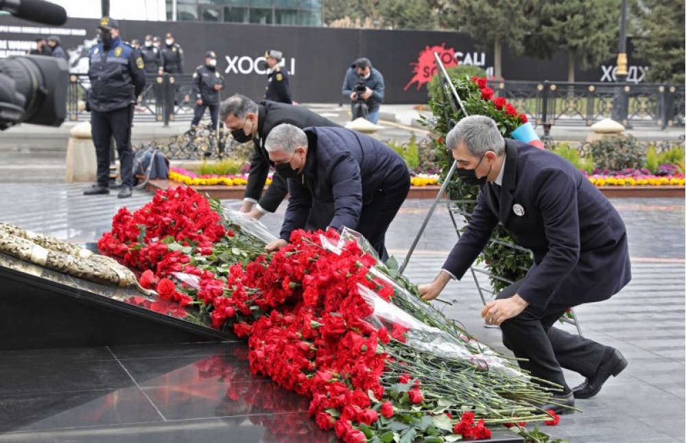 "İki sahil" xəbər verir ki, Xocalı soyqırımının 29-cu ildönümü ilə əlaqədar Dövlət Miqrasiya Xidmətinin rəisi, III dərəcəli dövlət miqrasiya xidməti müşaviri Vüsal Hüseynov, Xidmətin rəhbər şəxsləri və kollektivi faciə qurbanlarının xatirəsinə ucaldılmış “Ana harayı” abidəsini ziyarət ediblər. XX əsrin ən qanlı faciəsi kimi tarixə düşmüş qətliamda erməni vandalları tərəfindən amansızca qətlə yetirilmiş 613 nəfərin ruhu ehtiramla yad edilib, abidə önünə gül dəstələri düzülüb.