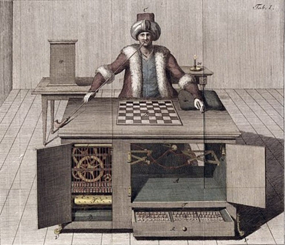 1770-ci ildə macar Volfqanq fon Kempelen şahmat avtomatı icad etmişdi. Avtomat insan boyu uzunluğunda fiqurundan və onu “işə salan” qəliz mexanizmdən ibarət idi. Avtomatın mexaniki əli fiqurları hərəkət etdirirdi.