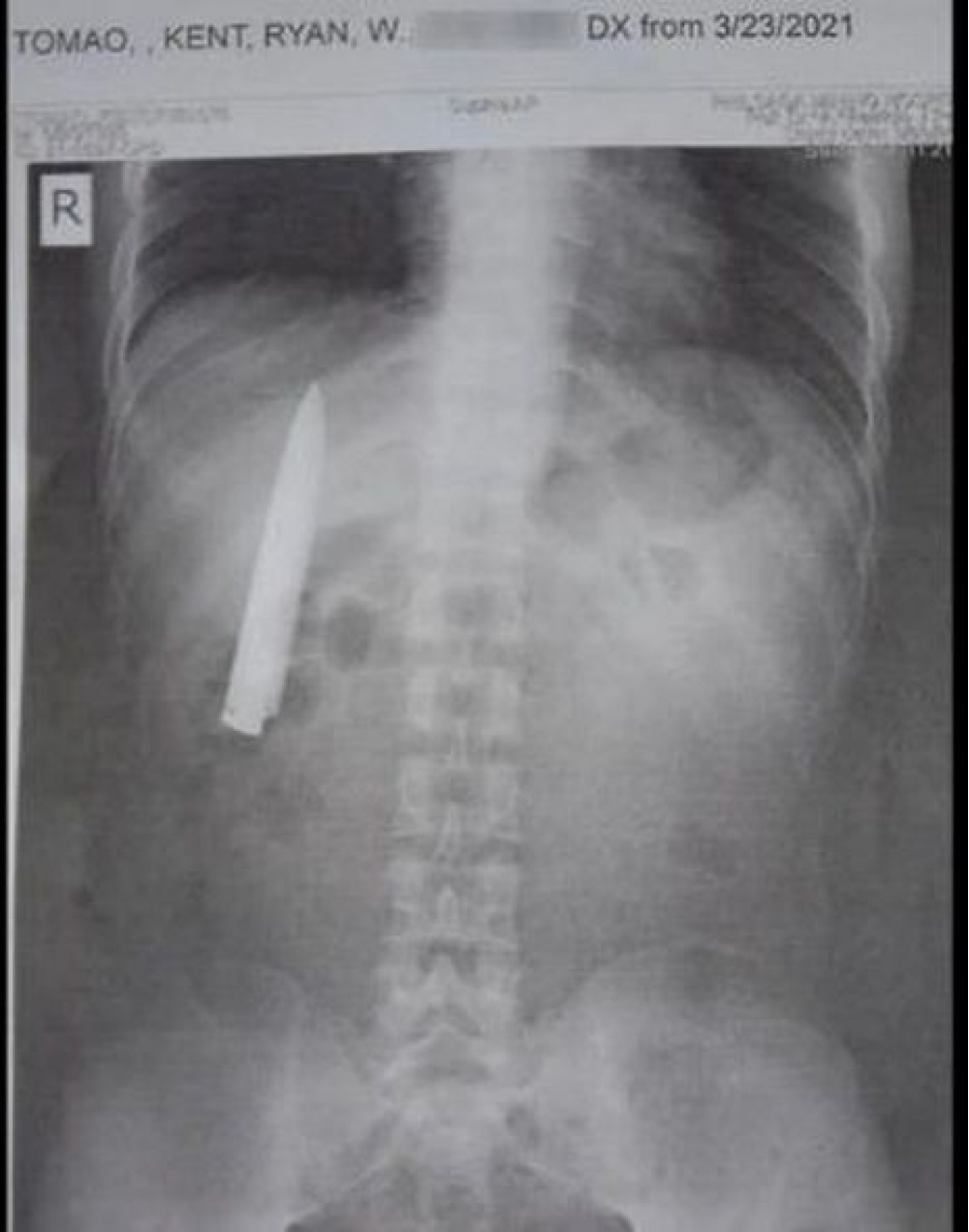"İki sahil" xəbər verir ki, bu barədə “Cocontus” xəbər yayıb. Bildirilir ki, 25 yaşlı Kent Rayan Tomao 2020-ci ildə Filippinin Kidapavan şəhərinə gəzməyə gedərkən bir qrup yeniyetmənin hücumuna məruz qalıb və bıçaqlanıb. Dövlət xəstəxanasında həkim müayinə etdikdən sonra yaranı yüngül sayıb və rentgenə ehtiyac duymadan tikiş atıb.