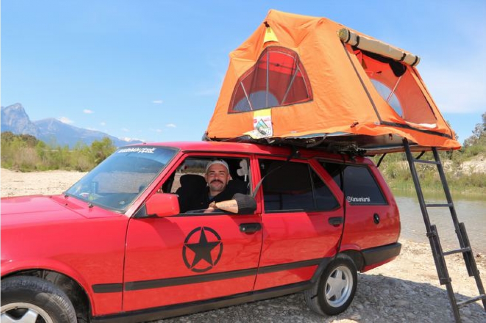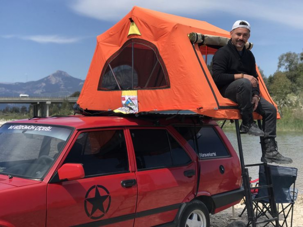 Avtomobilin baqaj hissəsini mətbəx kimi istifadə edən və maşının üstündə çadır quran Hüseyin Akkaş COVID-19 epidemiyası zamanı nəqliyyat vasitəsilə getdiyi yerlərdə təcrid olunmuş bir tətil etmək imkanının olduğunu bildirir.