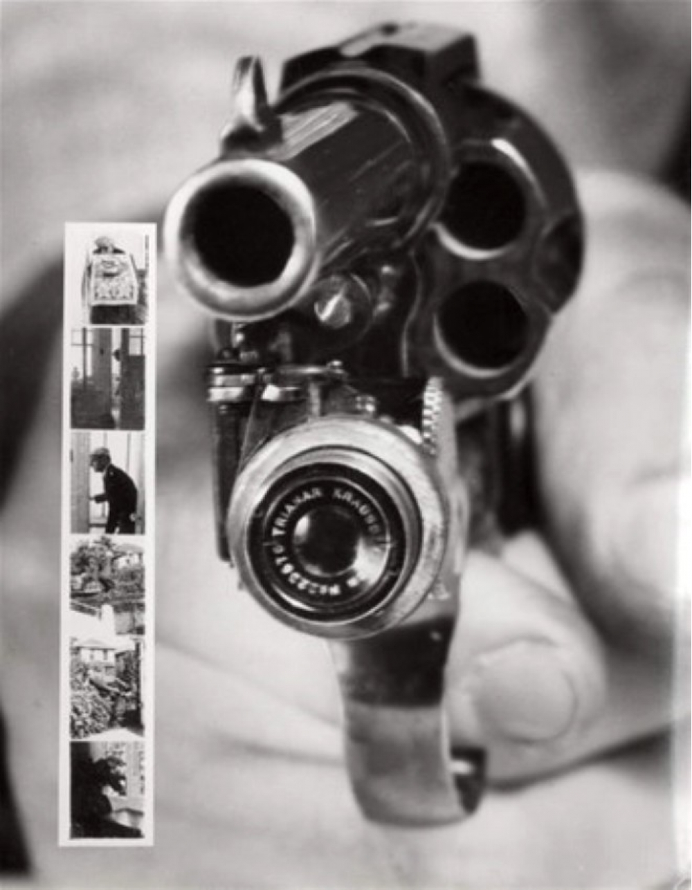 Digər fotoşəkildə hər atəş edildikdə şəkil çəkən bir silah əks olunmuşdur. Əslində bu silahin tarixi çox əvvəllərə dayanır və yaranma səbəbi böyük marağa səbəb olmuşdur. 1930-cu illərdə kimliyi bilinmiyən şəxs silahın altına kiçik bir kamera quraşdırdı və inteqrasiya edilmiş bir qapaq və tətik ikilisi yaratdı. 1938-ci ildə bu modeldən təsirlənən Abraham Kurnick, daha zərif bir versiya ilə gündəmə gəldi. Kiçik kameralar istənilən Colt 38 silahına asanlıqla yerləşdirilə bilirdi. Hər güllə üçün bir kadr çəkən bu ixtira ilə cinayətkarlar qaçsa da dəlil yaradıla bilərdi.