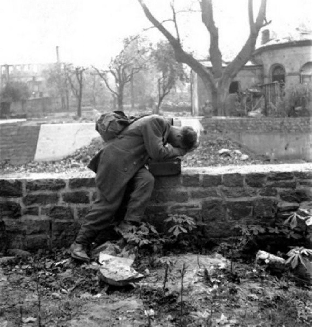 1946-ci ildə çəkilən fotoşəkildə evə qayıdıb ailəsini tapa bilməyən alman əsgəri əks olunmuşdur. Başını əlinin üstünə qoyan əsgər fotoya baxan insanlara dərin kədər hissi aşılayır. Əsgərin çarəsizliyi insanların iliklərinə kimi hiss olunur.