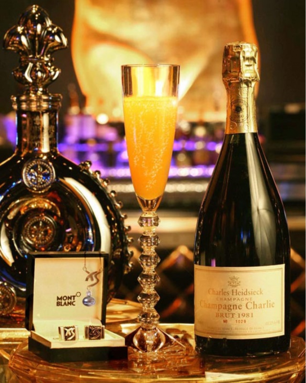 Las Vegasda məşhur olan Enkore Vynn tərəfindən hazırlanan "O" şampan kokteylinin qiyməti təxminən 10.000 dollardı. "O" kokteyli,həmçinin təzə portağal suyu, ərik suyu, gül nektarı ilə qarışdırılır. Qonaqlara hədiyyə olaraq bu kokteyl 18K qızıl boyunbağıya bənzəyən dəyərli daşlar ilə bəzədilmiş bir stəkanda təqdim olunur.