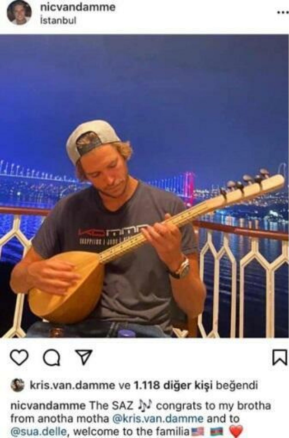 “İki sahil” xəbər verir ki, aktyorun kiçik oğlu Nikolas əlində türk sazı, fonda İstanbul körpüsü və paylaşımındakı Azərbaycan bayrağı ilə gəlinlərinə "ailəmizə xoş gəlmisən" deyə yazıb.