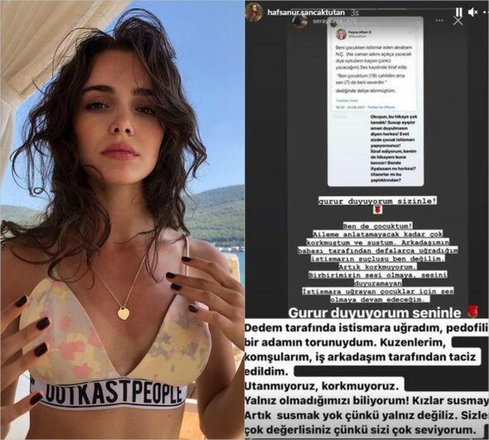 Türkiyəli məşhur aktrisa Hafsanur Sancaktutan özünün "Instagram" hesabından babası tərəfindən zorlandığını bildirib. O, bu etirafını ölkədə 6 və 9 yaşlarında olan bacı və qardaşın anası, atalıqları və dayıları tərəfindən təcavüzə uğramaları ilə bağlı senssasion hadisəyə (mediada "Elmalı" hadisəsi kimi tanınır) münasibət bildirərkən edib.