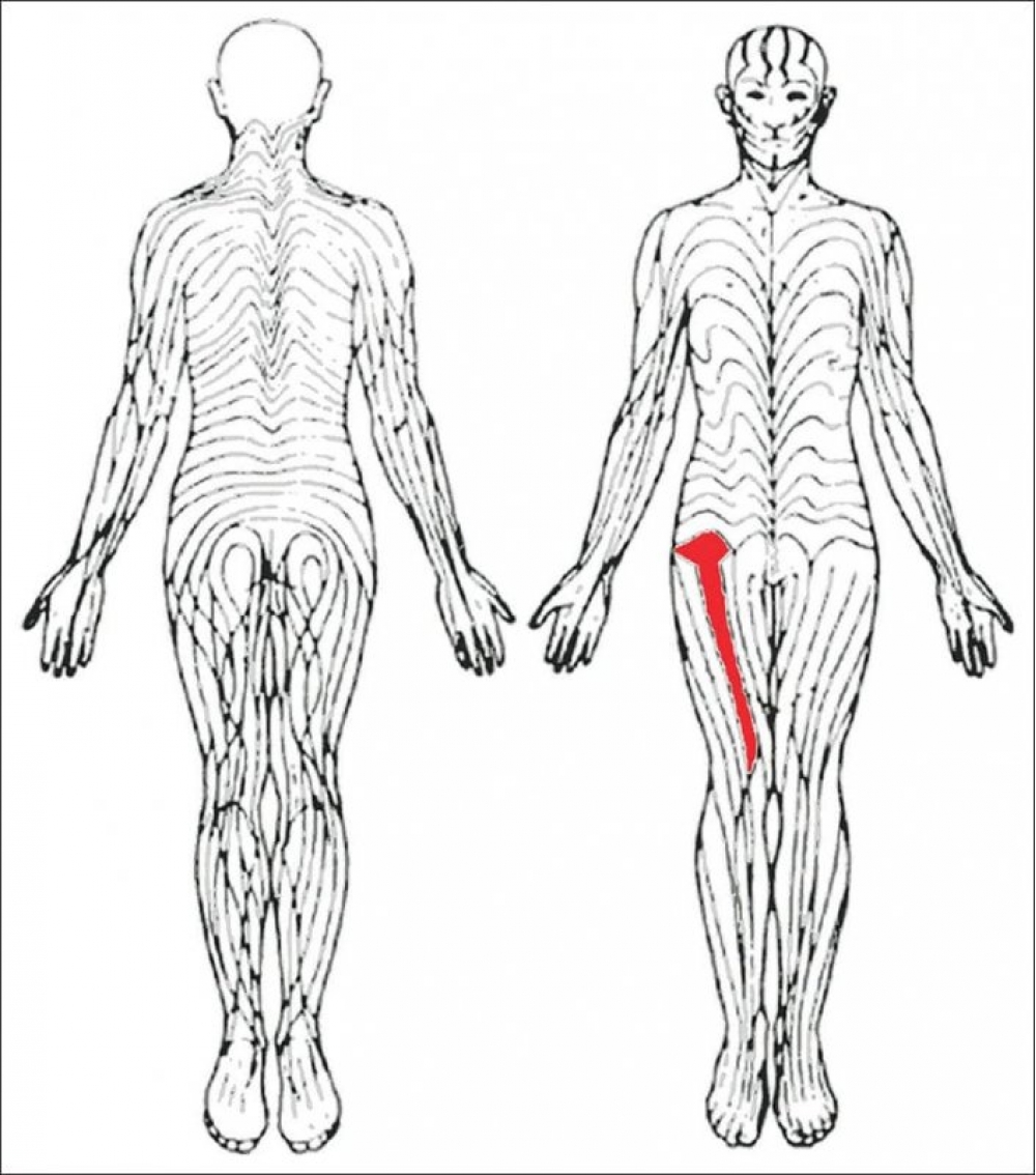 Bir çox heyvanın bədənində pələng dərisinə bənzəyən zolaqlar var.Bu, insanda da mövcuddur. Həmin zolaqlar Blaszko xətləri adlandırılır. Görünməz olaraq qalır və yalnız müəyyən xəstəliklərdə görünür. Budun ön tərəfindəki klassik Blaszko xətləri qırmızı rəngə boyanmışdır.