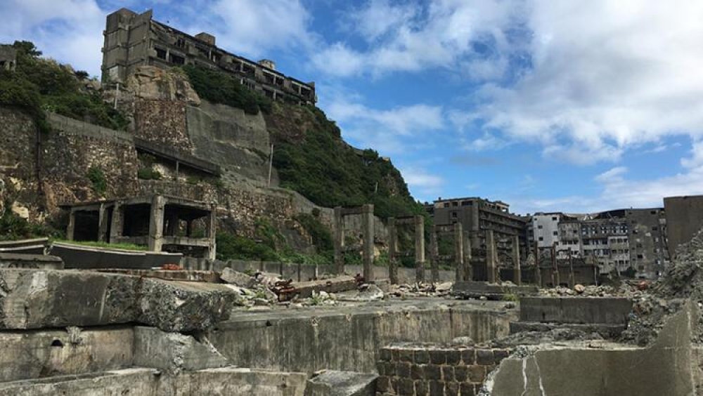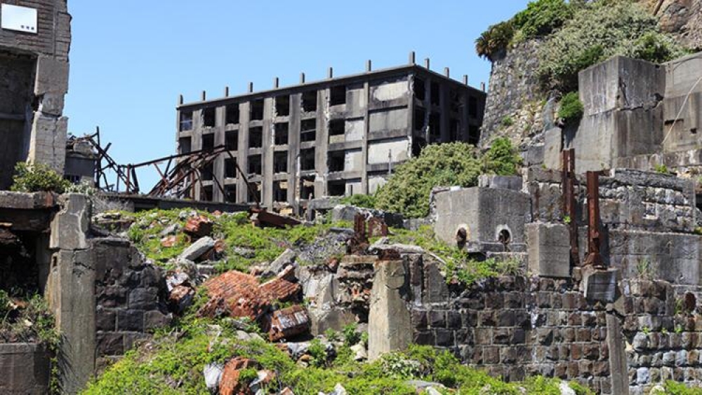 İkinci Dünya Müharibəsinin sonunda ABŞ -ın atdığı atom bombasından sonra çox zərər görmüş Naqasaki sahillərindəki ada buradan 15 kilometr aralıda yerləşir. Ətrafındakı yaşıl adalardan fərqli olaraq, bu ada uzaqdan döyüş gəmisinə bənzəyir.