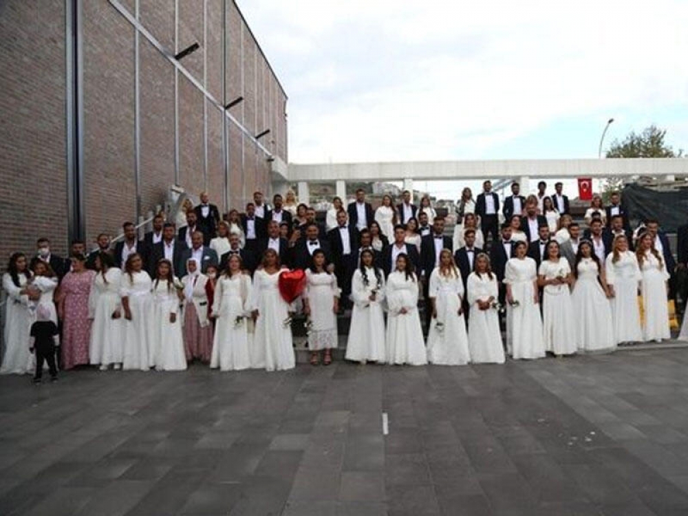 Türkiyənin Kocaeli şəhərində 46 cütlüyün toplu şəkildə nikah mərasimi keçirilib.
