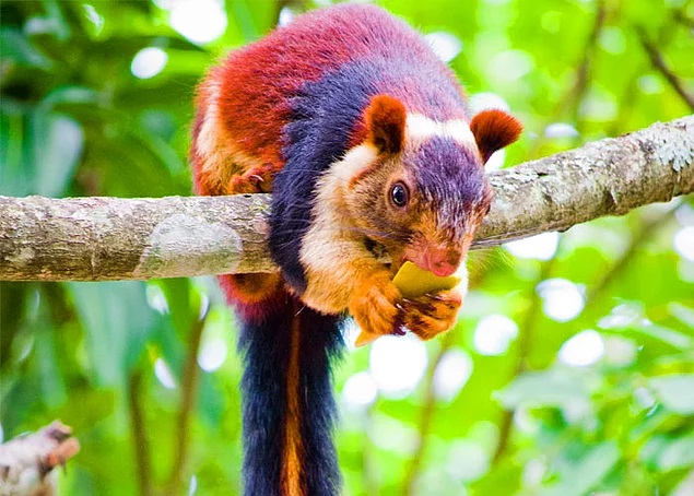4. Hindistanda narıncı, tünd qırmızı və bənövşəyi çalarları olan çox rəngli kürklü bir nəhəng dələ növü var. Bədənləri başdan quyruğa qədər 92 santimetrdir - boz dələlərdən iki dəfə böyükdürlər və 6 metr hündürlüyədək tullana bilirlər.