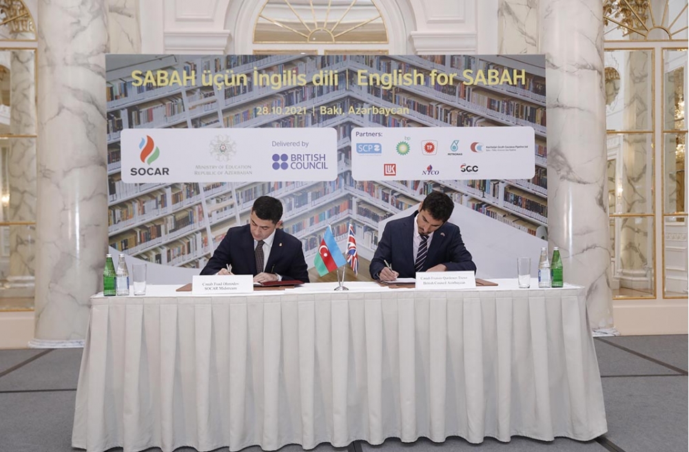 Oktyabrın 28-də SOCAR və onun Cənubi Qafqaz Boru Kəməri (CQBK) şirkətindəki tərəfdaşları ilə "British Council" arasında Azərbaycanda təhsilin keyfiyyətini davamlı olaraq daha da yüksəltmək, istedadlı magistratura tələbələrinin müasir elmi ədəbiyyata birbaşa çıxışını təmin etmək məqsədilə SABAH Magistratura qruplarında təhsil alan tələbələrin ingilis dili bacarıqlarının təkmilləşdirilməsi layihəsinin maliyyələşdirilməsinə dair imzalanma mərasimi keçirilib.