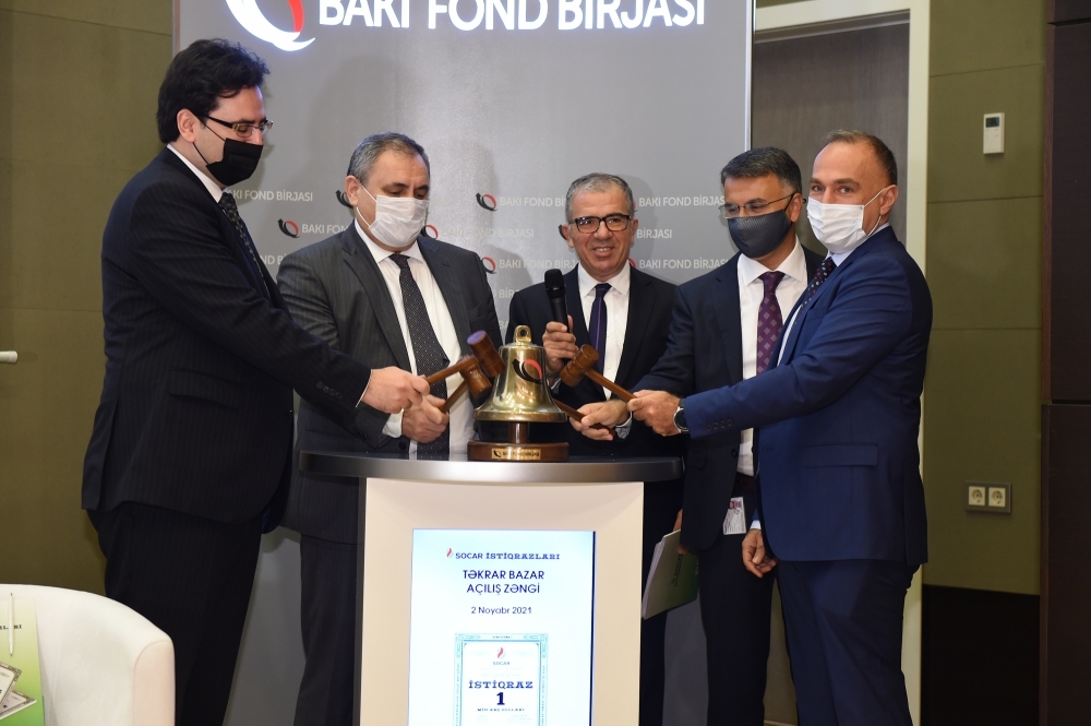 Tədbirin sonunda SOCAR İstiqrazlarının təkrar bazar əməliyyatlarının başlandığını elan edən rəmzi açılış zəngi çalınmışdır.