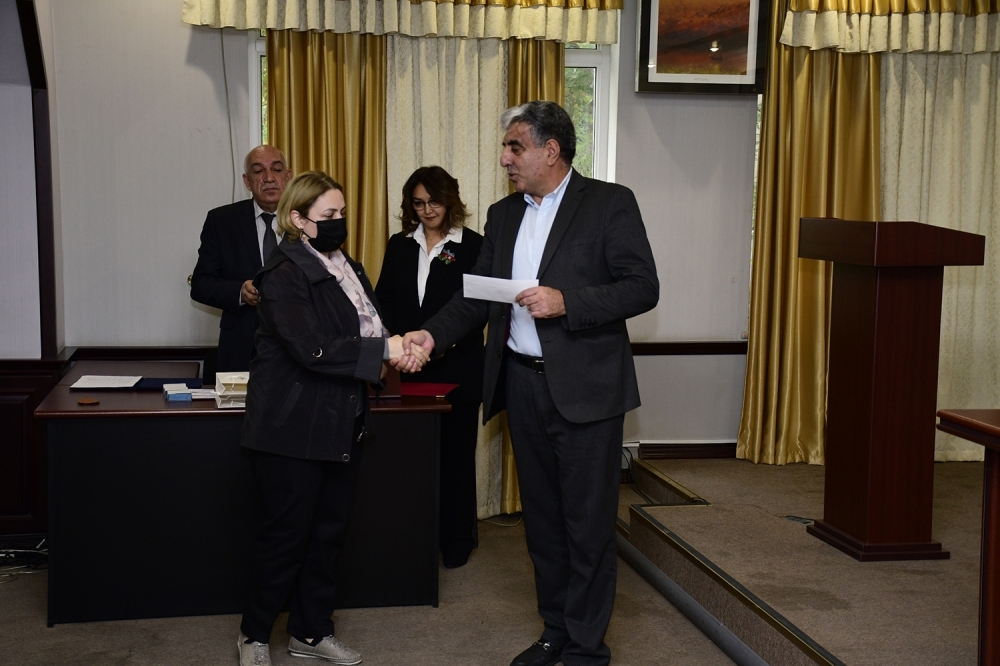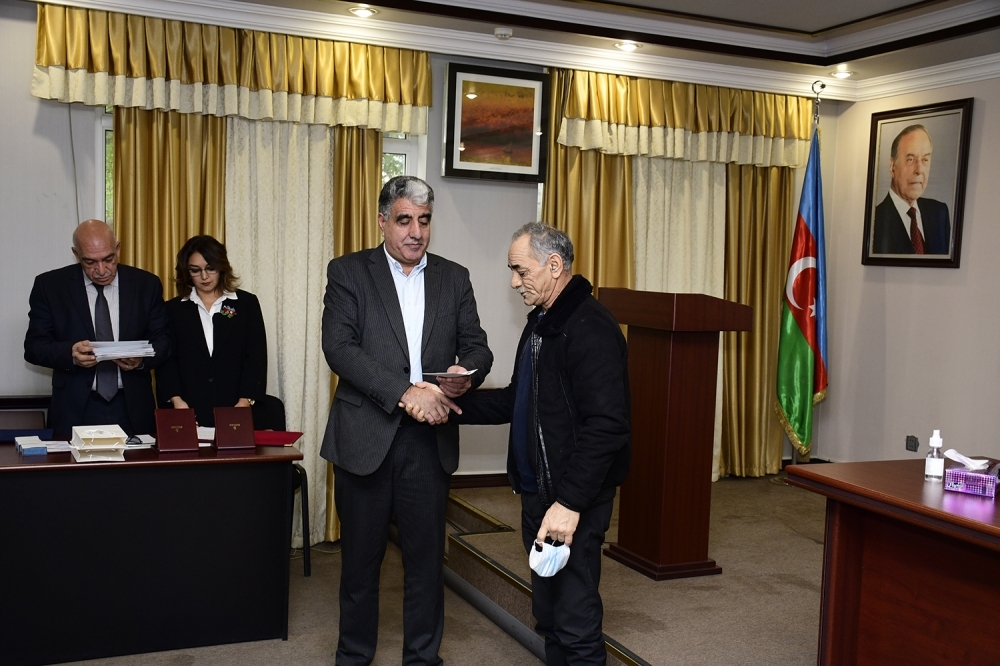 Sonda SOCAR-ın Kompleks Qazma İşləri Trestinin qazi və şəhid ailələrindən olan əməkdaşlarına SOCAR-ın «Fəxri Neftçi» döş nişanları, fəxri fərmanları və müxtəlif mükafatları təqdim olundu.