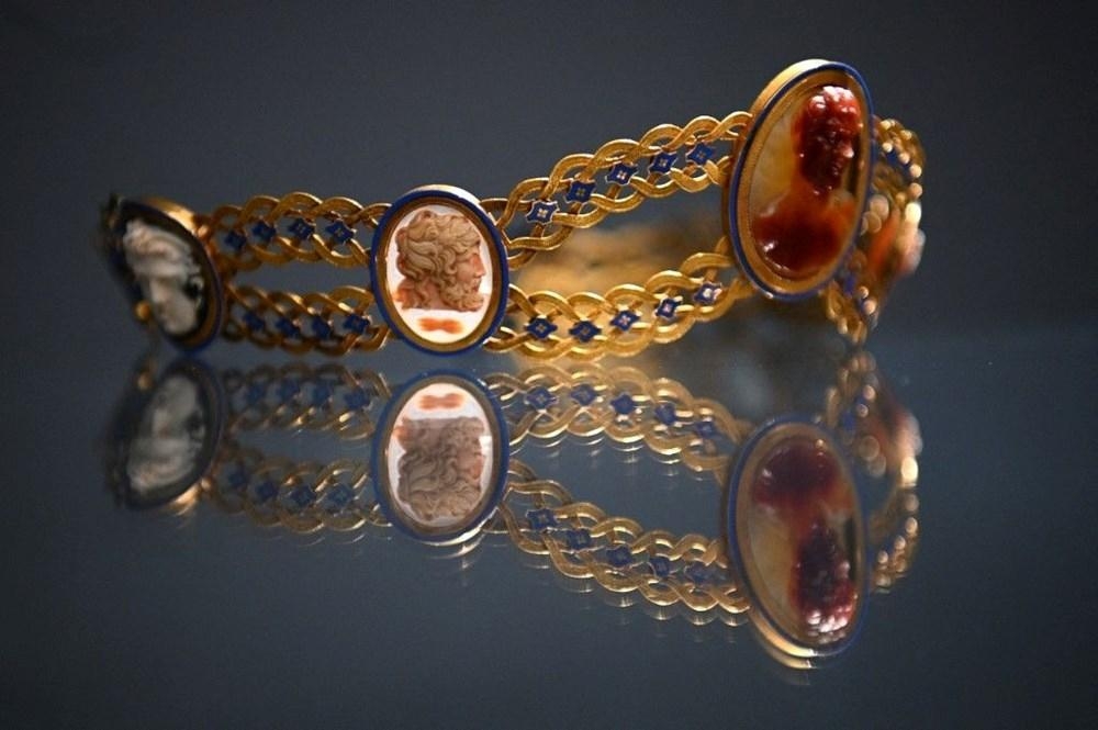 İkinci qızıl tacın üzərində isə qədim yunan tanrıları Zevs, Dionis, Meduza, Pan və Qayanın əqiq və jade miniatür portretləri var.
