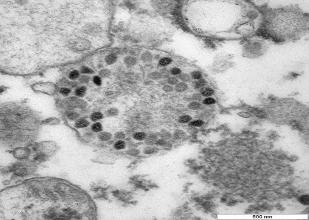 Dərc edilmiş fotolarda əksər hallarda hüceyrədaxili şəbəkənin genişlənmiş boruları olan vezikulyar strukturları (qabarcıq) göstərir. Virusu təşkil edən zülallar bu qabarcıqların ətrafında toplanır və müəyyən fiziki və kimyəvi şəraitdə içəriyə nüfuz edərək əlavə bir örtük alır.