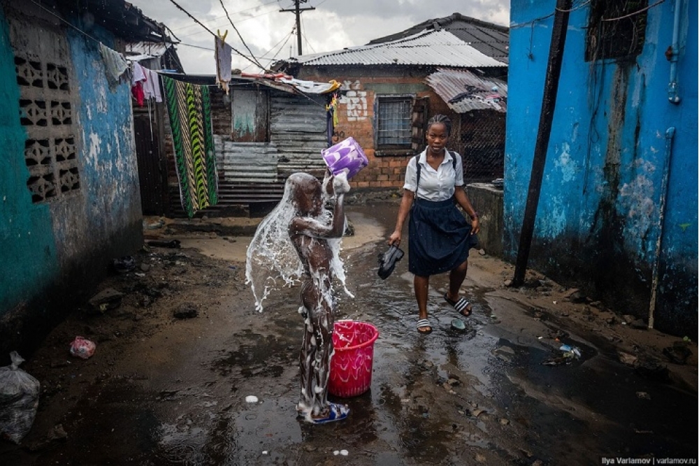 Yağış orada çimib təmizlənmək üçün bir fürsətdir! Uşaqlar bunu birbaşa çirkli küçələrdə edirlər, çünki əslində başqa heç bir yer yoxdur.