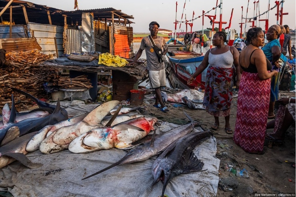Axşam saatlarında balıqçılar tutduqlarını zibilli sahillərdə bölüşürlər.