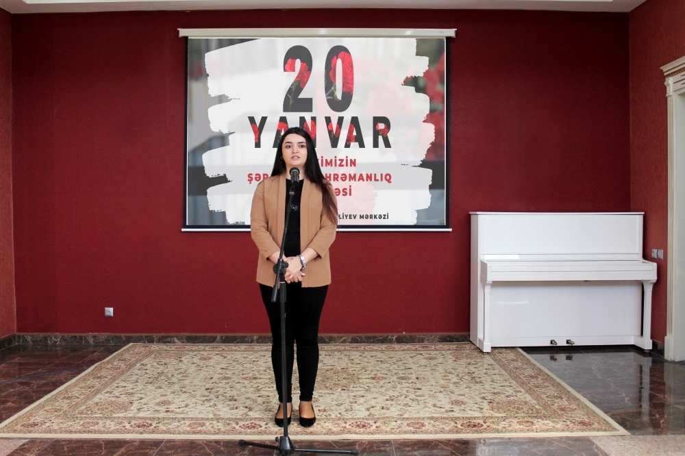 Anım tədbirində Ulu Öndər Heydər Əliyevin, xalqımızın azadlığı və müstəqilliyi yolunda canlarından keçən Vətən övladlarının xatirəsi bir dəqiqəlik sükutla yad edilib. Mərkəzin direktoru Dilbər İbayeva mərasimi açıq elan edərək 1990-cı il Yanvarın 19-dan 20-nə keçən gecə sovet hərbi birləşmələrinin törətdikləri vəhşilikdən geniş söhbət açıb. O, bildirib ki, Ümummilli Lider Heydər Əliyev xalqın təkidli tələbi ilə siyasi hakimiyyətə qayıtdıqdan sonra 20 Yanvar hadisələrinə hüquqi-siyasi qiymət verilmişdir. Azərbaycanın azadlıq və müstəqillik mübarizəsi tarixində mühüm mərhələ olmuş 20 Yanvar faciəsi qurbanlarının xatirəsi hər il yad olunur, Şəhidlər xiyabanı ziyarət edilir.