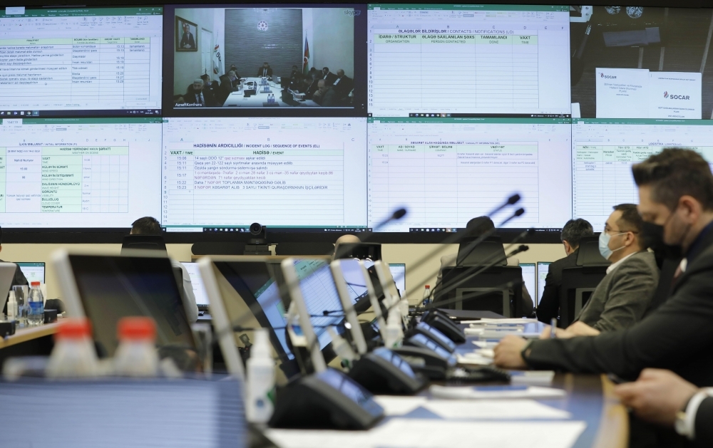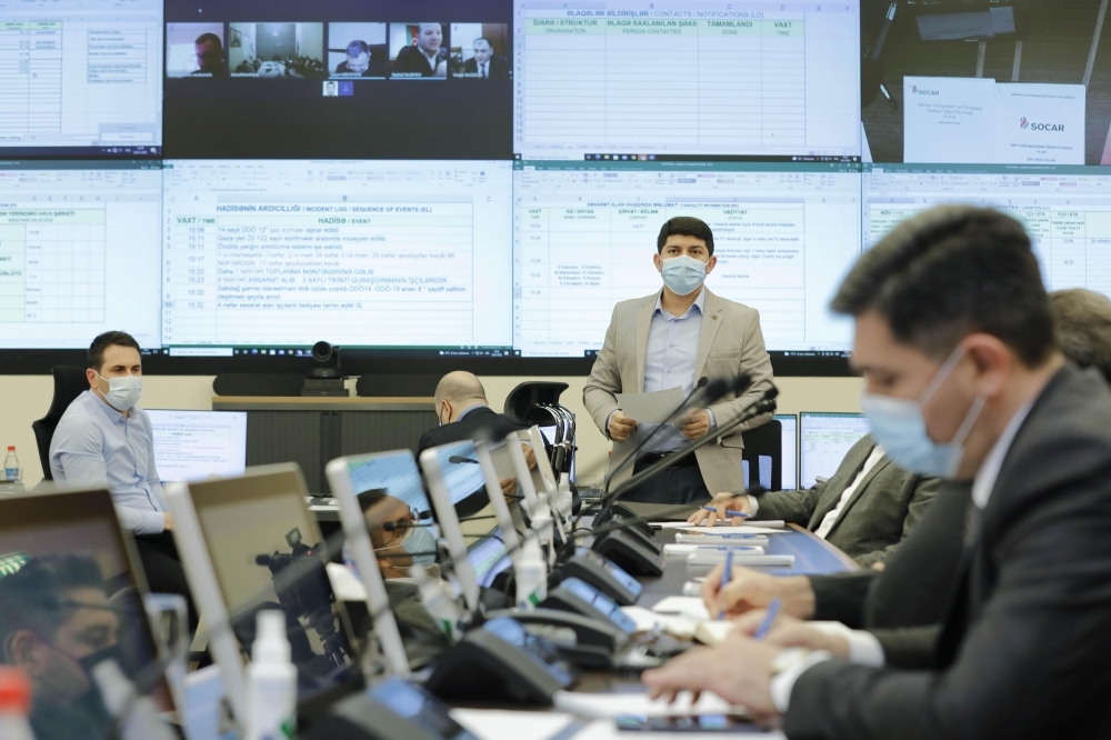 “İki sahil” xəbər verir ki, Mərkəzin yaradılmasından sonra keçirilən ilk bu tipli təlim-məşq toplanışında “Günəşli” yatağındakı 14 saylı dərin dəniz özülündə yüksək təzyiqli qaz xəttində ehtimali qəza vəziyyəti simulyasiya olunub. “Qəza” ilə bağlı məlumatlandırıldıqdan dərhal sonra SOCAR rəhbərliyi Böhran Vəziyyətlərinin və Fövqəladə Halların İdarəolunması Mərkəzində toplanmış, 15 dəqiqə ərzində situasiya şirkət rəhbərliyinin tam nəzarəti altına alınıb. Təlimdə simulyasiya olunmuş qəzanın fəsadlarının aradan qaldırılması şirkət rəhbərliyinin nəzarəti və rəhbərliyi altında məşq olunub.