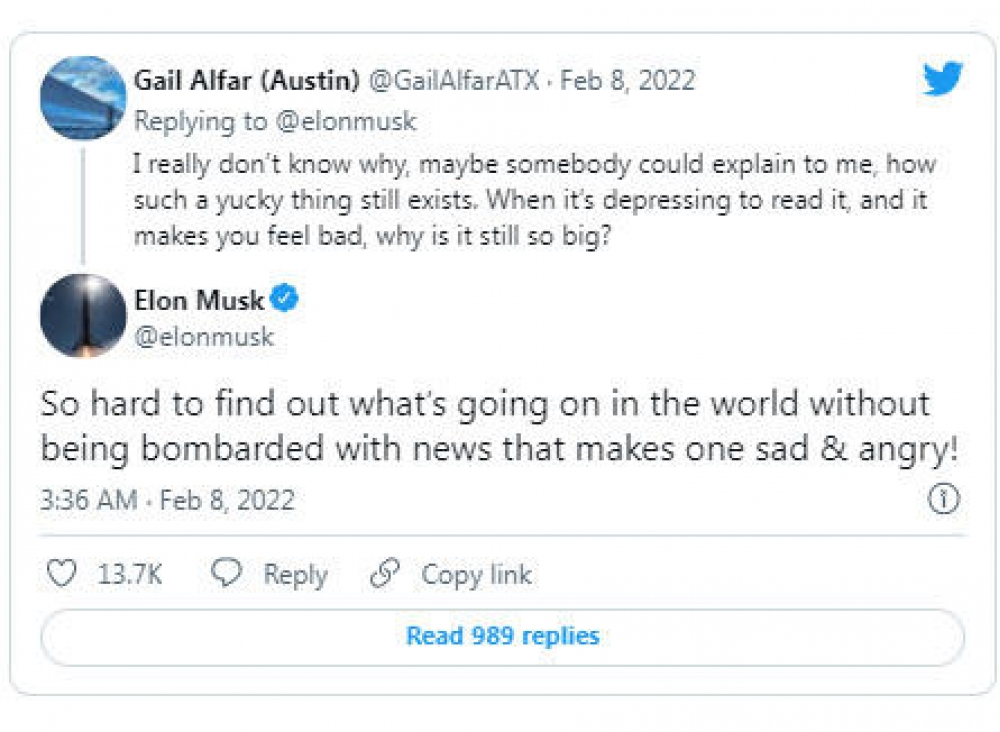 İlon Mask dünya mediasında neqativ xəbərlərin bolluğundan gileylənib.