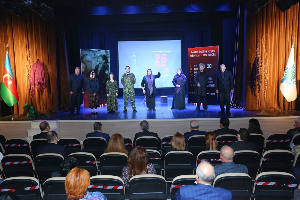 Tədbir şəhidlərin əziz xatirələrinin ehtiramla yad edildikdən sonra Şuşa Dövlət Musiqili Dram Teatrının aktyorlarının ifasında “Xocalım, evimizə qayıdırıq!” adlı ədəbi-bədii kompozisiyanın təqdimatı ilə açıq elan olundu.