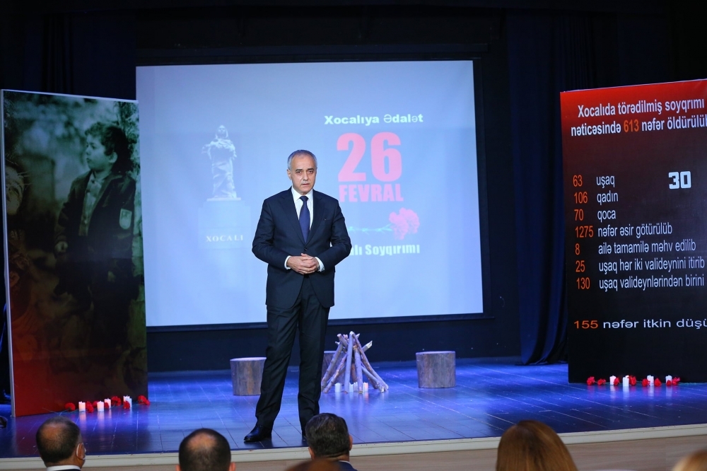 Azərbaycan Respublikası Milli Məclisinin deputatı Kəmaləddin Qafarov çıxışında bildirdi ki, 2008-ci ildə Heydər Əliyev Fondunun vitse-prezidenti Leyla Əliyevanın təşəbbüsü ilə başlanmış "Xocalıya ədalət!” beynəlxalq kampaniyası bu istiqamətdə təbliğat işini daha da fəallaşdırmış və faciə ilə əlaqədar dəhşətli faktlar bu kampaniya çərçivəsində aparılan işlər sayəsində geniş beynəlxalq ictimaiyyətə çatdırılmış, planetin bütün guşələrində milyonlarla insan erməni millətçilərinin əsl simasına bələd olmuş və bilmişlər ki, ermənilər öz sərsəm ideyalarını həyata keçirmək naminə heç nədən, hətta uşaqları belə qətlə yetirməkdən çəkinməmişlər. Həmçinin əlavə etdi ki, “Xocalı faciəsi”nin 30-cu ildönümü yaşansa da, hələ də Azərbaycanın bütün vətəndaşlarının o dəhşətli, faciəli gecəni, xalqımızın başına gətirilən bəlaları unutmadığını, milli azadlıq, müstəqillik uğrunda qəhrəmanlıq göstərən oğul və qızlarımızı hörmətlə yad etdiklərini bildirdi.