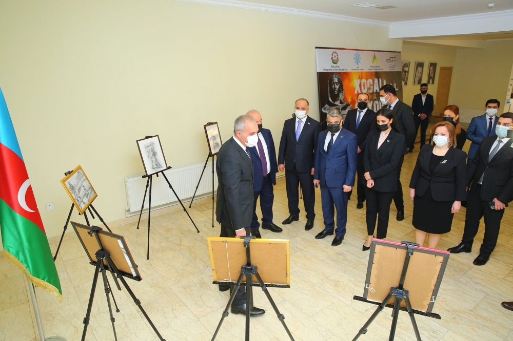 Tədbirdən öncə qonaqlar Xocalı soyqırımının 30-cu ildönümü ilə əlaqədar Binəqədi Rayonu Gənclər və İdman İdarəsi və “Binəqədi Gənclər Evi” sosial xidmət müəssisəsinin birgə təşkilatçılığı ilə məktəblilərin əl işlərindən ibarət hazırlanmış rəsm sərgisi ilə tanış oldular.