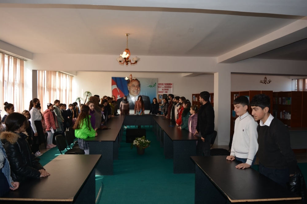 Çıxışlardan sonra şagirdlərin ifasında Xocalı soyqırımına həsr olunmuş şerlər səsləndi, soyqırımından bəhs edən sərgiyə baxıldı.
