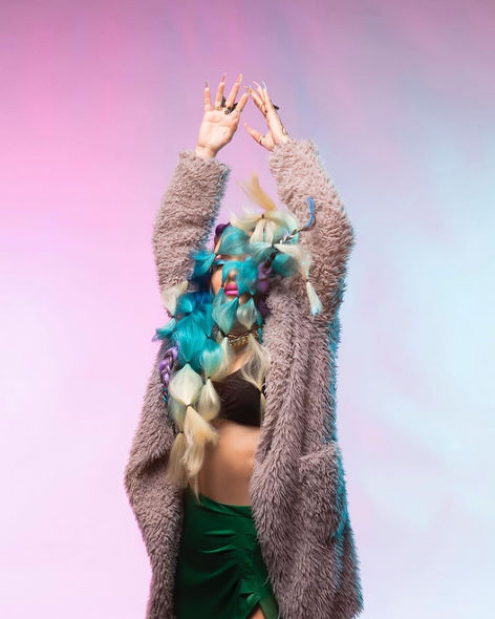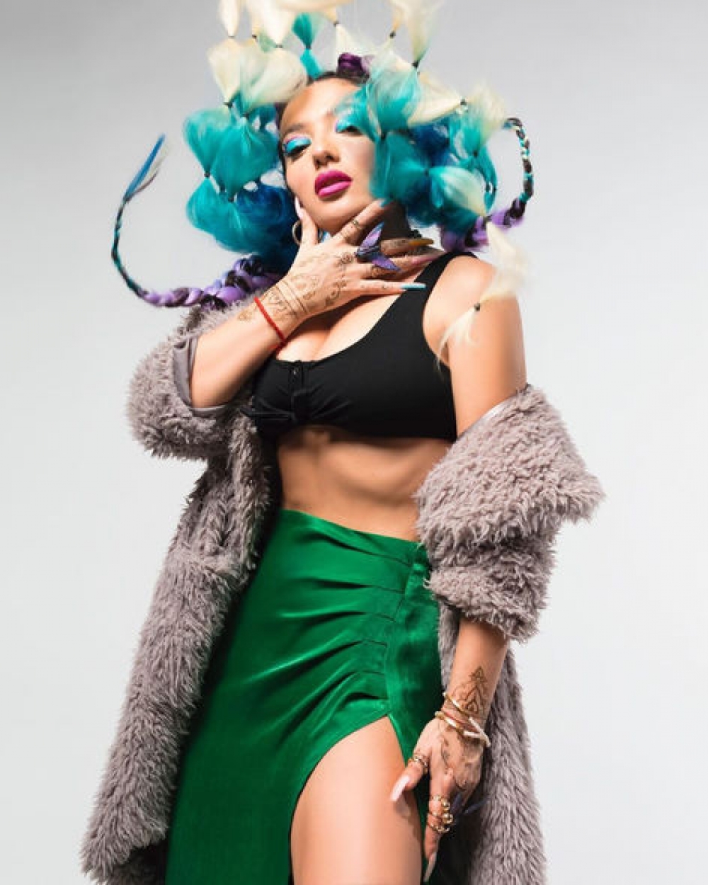 İfaçı mini ətəkli, cazibədar obrazını qalın və uzun kürklə tamamlayıb. Kazımovanın saç və stili üzərində peşəkar komanda çalışıb.
