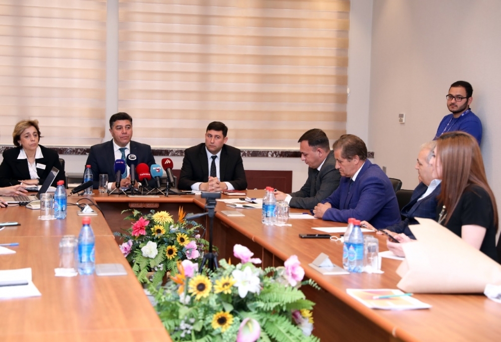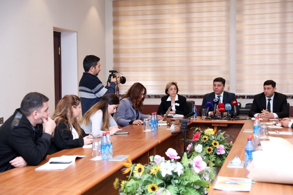 İB-nin İctimaiyyətlə əlaqələr şöbəsinin rəisi Eldəniz Vəliyevin moderatorluğu və qurumun digər şöbə rəislərinin iştirakı ilə keçirilən tədbirdə jurnalistlərin sualları cavablandırılıb.