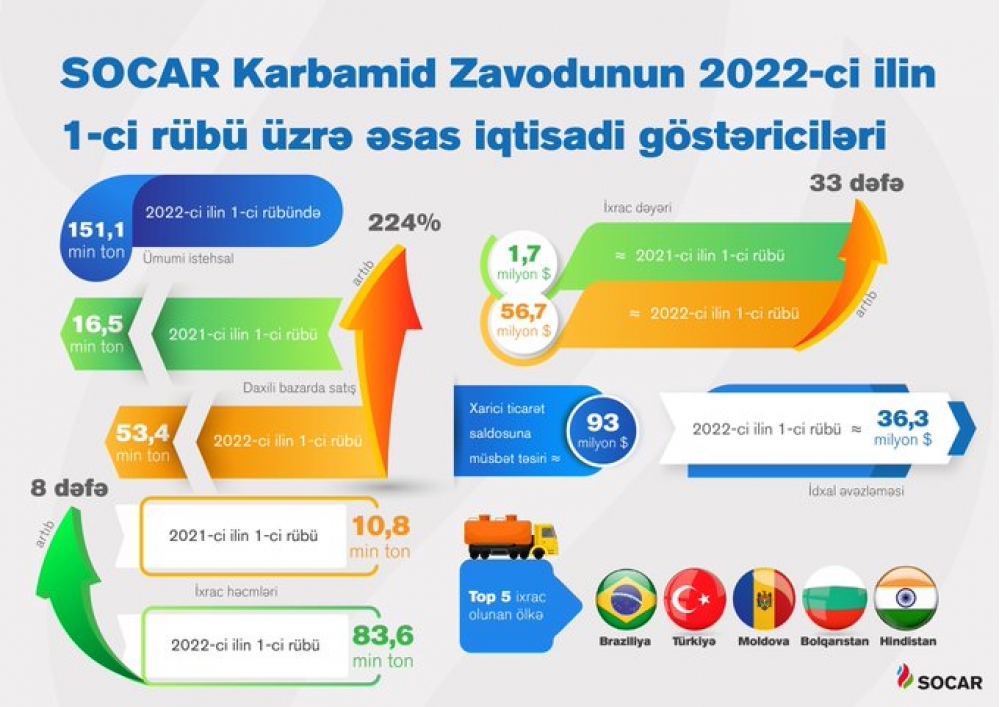 Cari ilin 1-ci rübündə daxili bazara satılan karbamidin həcmi 3,24 dəfə, ixrac həcmləri isə 8 dəfə artıb.