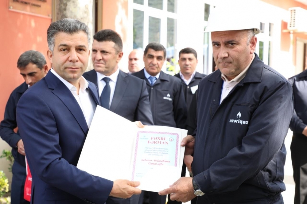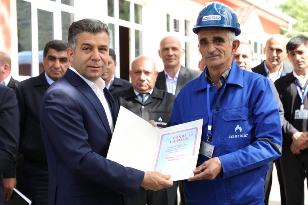 Daha sonra Zaqatala Regional qaz istismarı İdarəsinin tabeliyində olan Balakən, Zaqatala, Qax, Şəki, Oğuz, Ağdaş və Qəbələ xidmət sahələrinin ümumilikdə 28 əməkdaşı "Azəriqaz" İstehsalat Birliyində faydalı işinə, nümunəvi əmək fəaliyyətinə və Həmkarlar İttifaqı hərəkatında fəal iştirakına görə Fəxri Fərman və qiymətli hədiyyə ilə mükafatlandırılıb.