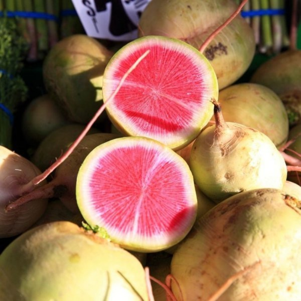 Süni yolla yaradılmış şirin dadı və ədviyyatlı acı tamı olan bitkidir. Bu bitki Avropada yetişdirilsə də, lakin orada gözlənilən tələbat olmadı. Amerikalı fermerlər kəsildikdə əsl qarpız kimi görünən parlaq tərəvəzə maraq göstərdilər. Onlar evdə əkməklə məhsulu məmnuniyyətlə populyarlaşdırdılar və bir çox ştatlarda fəal şəkildə becərməyə başladılar.