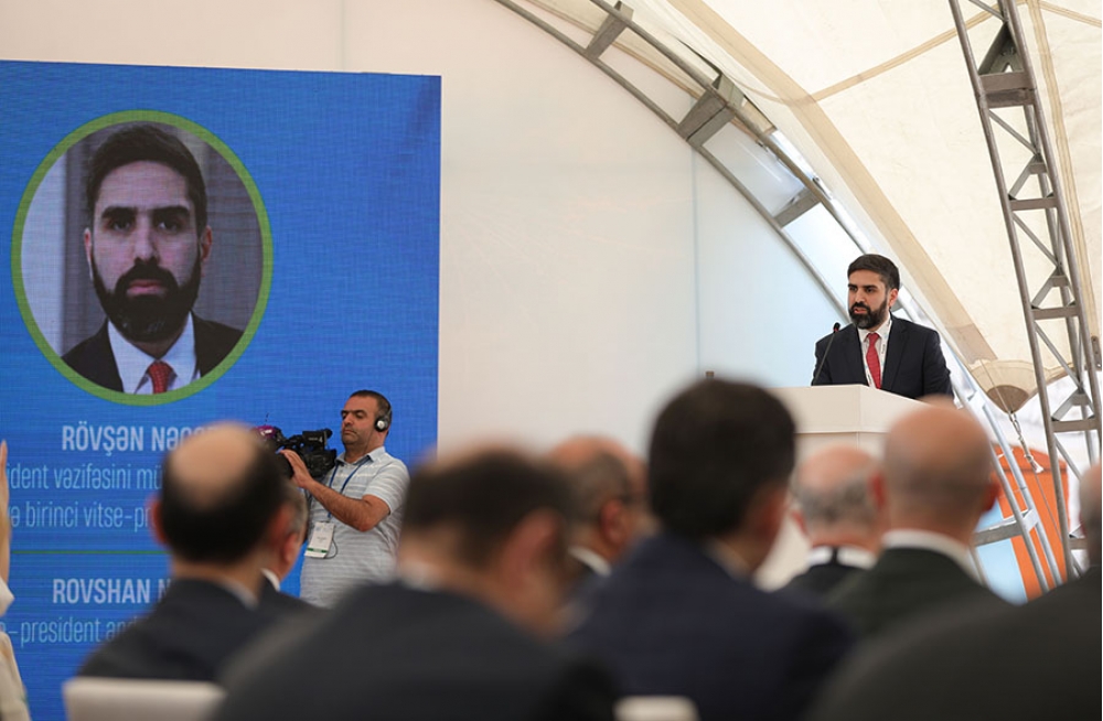 SOCAR-ın birinci vitse-prezidenti, prezident vəzifəsini müvəqqəti icra edən Rövşən Nəcəf çıxışında “SOCAR-ın 2035-ci ilə qədər Korporativ Strategiyası” çərçivəsində, enerji keçidi, rəqəmsallaşma və innovasiya kimi fəaliyyət sahələrini ehtiva edən yeni üfüqlər üzrə strateji təşəbbüslərindən bəhs edib. O qeyd edib ki, forumun xüsusi sessiyası çərçivəsində bərpa olunan enerji mənbələrinin birgə inkişafı haqqında SOCAR və “Masdar” arasında imzalanacaq Anlaşma Memorandumu, eyni zamanda SOCAR və bp arasında Əməkdaşlıq Müqaviləsi bu strategiyanın əsas komponentlərindən biri kimi qiymətləndirilə bilər.