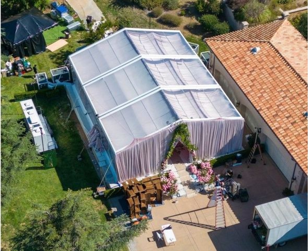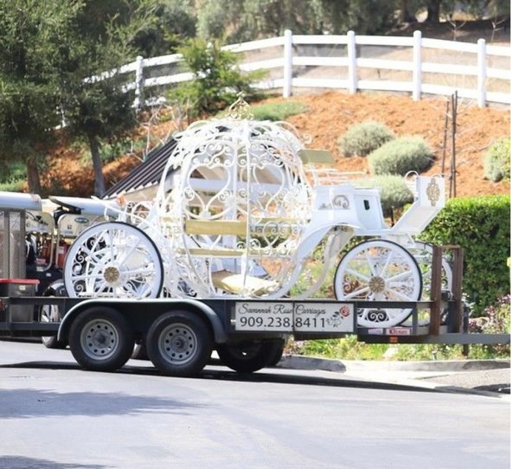 40 yaşlı müğənni ilə 28 yaşlı fitnes müəllimi qonaqları pop ulduzun Kaliforniyadakı villasının həyətində qarşılayıblar.