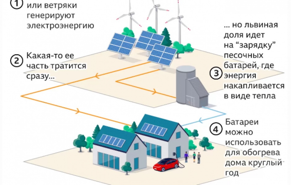 Dünyanın ilk qum akkumulyatoru Finlandiyada işə salınıb. O, günəş və külək enerjisini istiliyə olan qiymət və tələbin yüksəldiyi qışa qədər saxlamağa imkan verir. Zavod Vatajankoski elektrik stansiyasında yerləşir. O, yaşıl enerjinin əsas problemlərindən birini - mövsümiliyi həll etmək üçün düşünülüb.