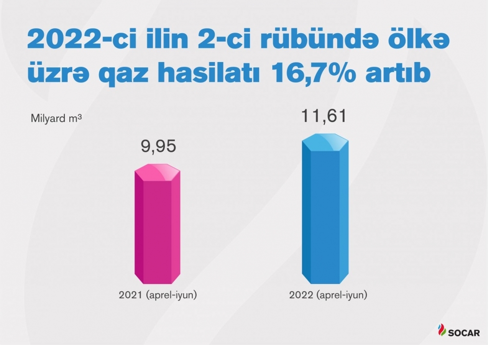 SOCAR-dan "İki sahil"ə bildirilib ki, şirkət tərəfindən 20 min metrə1 yaxın qazma işləri həyata keçirilib ki, bu da ötən ilin müvafiq dövrü ilə müqayisədə 41,5% çoxdur. Hesabat dövründə şirkət tərəfindən 1,9 milyon tondan2 çox neft, 2 milyard kubmetrə3 yaxın qaz hasil olunub. Ölkə üzrə ümumilikdə 8,1 milyon tondan4 çox neft və 11,6 milyard kubmetrdən5 çox qaz hasil edilib. Dövr ərzində ölkə üzrə qaz hasilatı 16,7 % artıb.