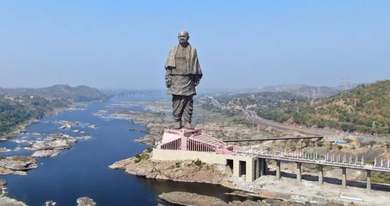 Hindistanın müstəqillik mübarizəsinin simvollarından biri olan Sardar Vallabhbhai Patelin heykəli Gujarat əyalətində qurulub. Məhz o, 1947-ci ildə ingilislər ölkəni tərk etdikdən sonra qalan 600 knyazlığı birləşdirdi. 31 oktyabr 2013-cü ildə hindistanlı heykəltəraş Ram Sutar 9 metrlik maket hazırlayaraq, sonradan mühəndis hesablamaları apardıqdan sonra onu 182 metrə qədər ucaldıb . 2018-ci ildə keçirilən açılış mərasimində ölkə rəsmiləri də iştirak ediblər.