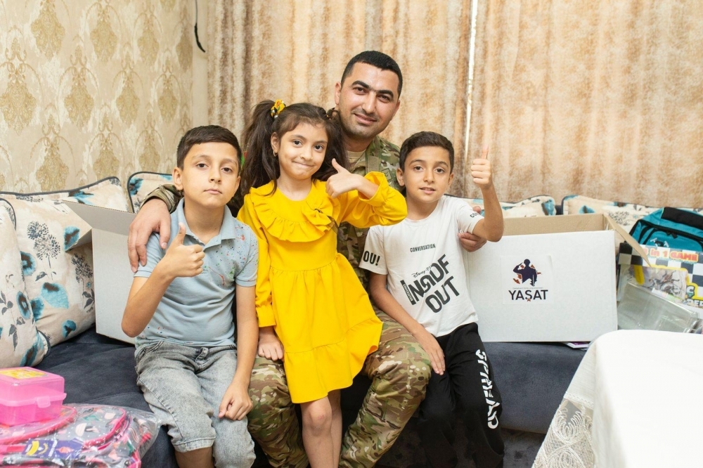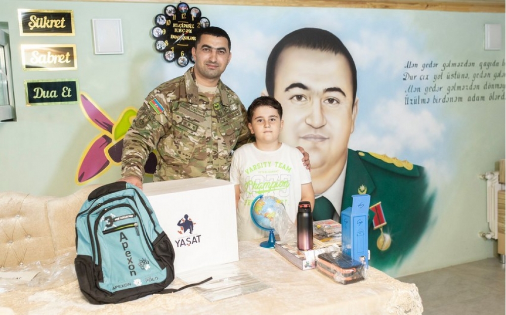 "YAŞAT" Fondu yeni tədris ilinin başlanması ilə əlaqədar şəhidlərimizin məktəbli övladlarına dərs ləvazimatlarından ibarət hədiyyə qutuları çatdırıb.