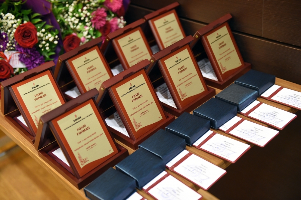 Sonra SOCAR-ın Baş ofisində, strukturuna daxil olan müəssisələrdə, birgə müəssisələrdə, əməliyyat şirkətlərində və tərəfdaş şirkətlərdə çalışan və əmək fəaliyyətində fərqlənən bir qrup neftçi “Fəxri neftçi” döş nişanı və Fəxri fərmanla təltif olunub.
