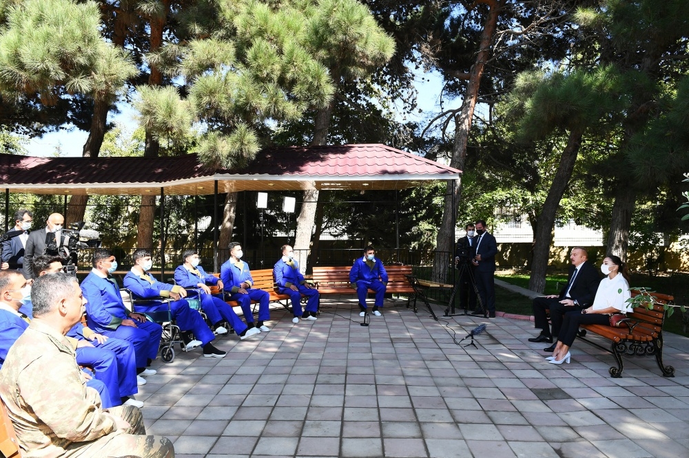Sentyabrın 30-da Azərbaycan Respublikasının Prezidenti, Silahlı Qüvvələrin Ali Baş Komandanı İlham Əliyev və birinci xanım Mehriban Əliyeva Ermənistanın sentyabrın 27-dən başlayan hərbi təxribatı zamanı yaralanan və Müdafiə Nazirliyinin Mərkəzi Hərbi Klinik Hospitalında müalicə olunan hərbçilərlə görüşüblər.
