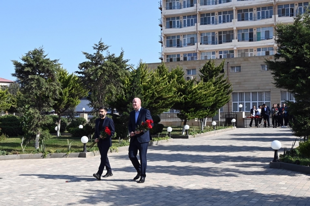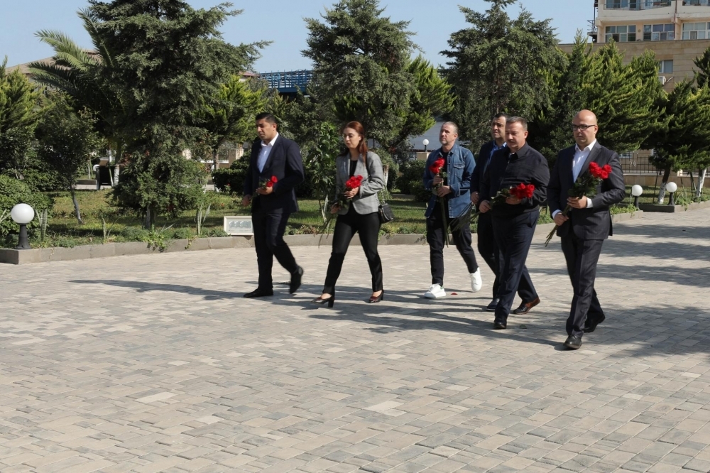 İlk öncə nümayəndə heyəti xalqımızın ümummilli lideri Heydər Əliyevin “Neft Daşları”nda ucaldılmış abidəsini ziyarət edib, önünə gül dəstələri düzüb.