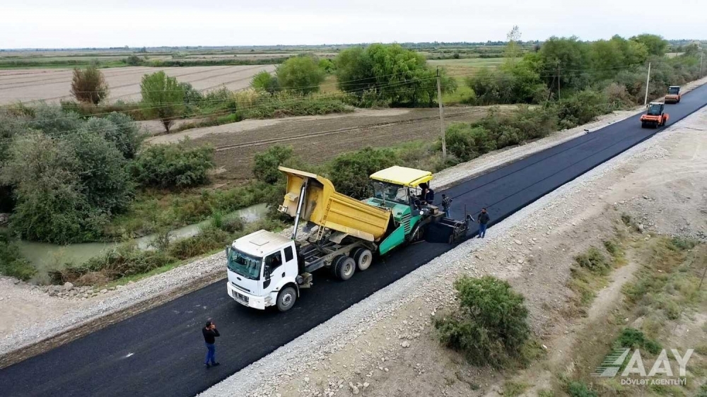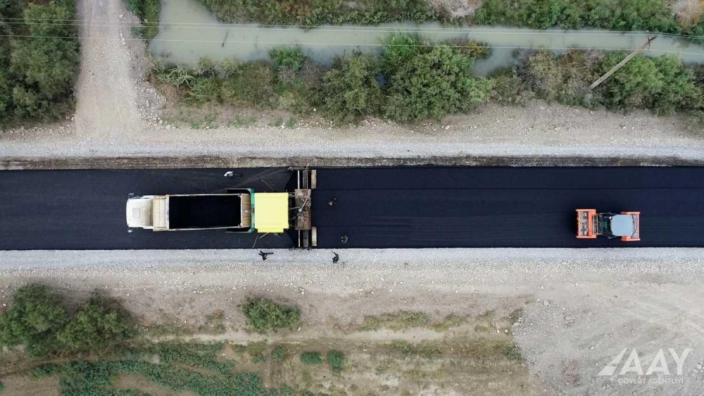 Hazırda 2 laydan ibarət 12 santimetr qalınlığında yeni asfalt-beton örtüyünün döşənməsi icra edilir.