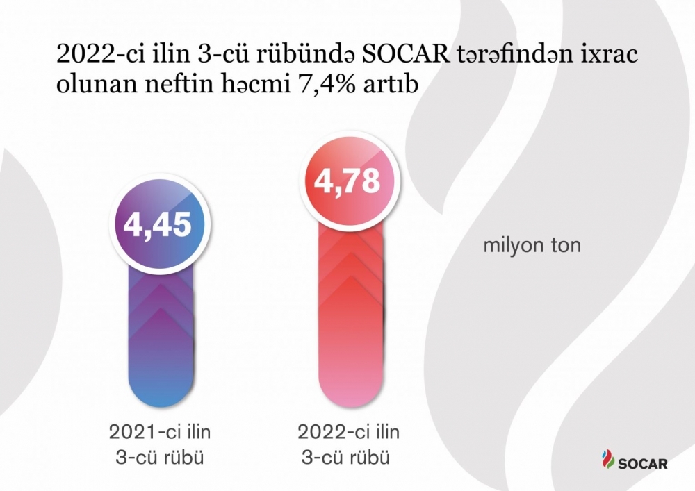 2022-ci ilin üçüncü rübündə ölkə üzrə 8 milyon tondan artıq neft, 11 milyard kubmetrə yaxın qaz hasil edilib.