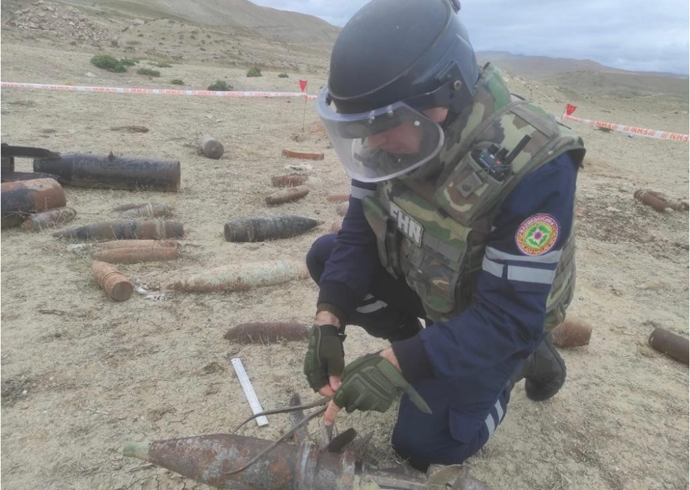 Hüquq-mühafizə orqanı əməkdaşları ilə birgə ərazidə müvafiq təhlükəsizlik tədbirləri görüldükdən sonra hadisə yerinə baxış zamanı aşkar edilmiş sursatın 7 ədəd 100mm-lik tank mərmisi, 3 ədəd 120 mm-lik top mərmisi, 2 ədəd TAB-50 aviabomba, 1 ədəd TAB-7 aviabomba, 21 ədəd 82mm-lik tank mərmisi, 5 ədəd 76mm-lik top mərmisi, 10 ədəd 100 mm-lik top mərmisi, 3 ədəd 85 mm-lik top mərmisi, 1 ədəd 120 mm-lik qumbaraatan mərmisi, 1 ədəd Qrad mərmisi (2 motorlu), 3 ədəd F-1 əl qumbarası, 2 ədəd POMZ-2 piyada əleyhinə mina və 1 ədəd əleyhiqaz kömürü olduğu müəyyən edilib.