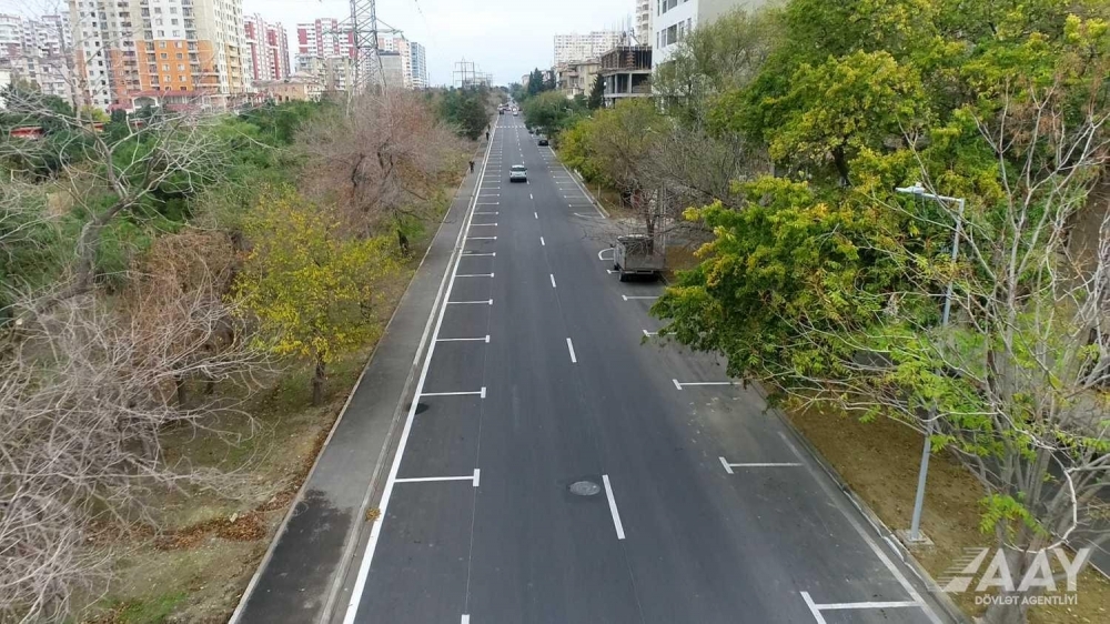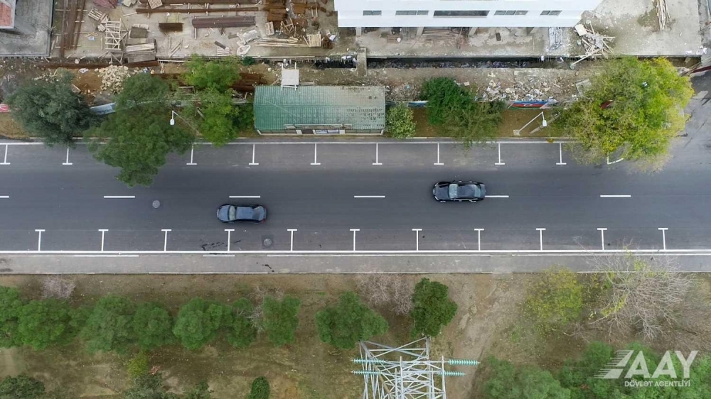 Bu zaman 10 313 kvadratmetr sahəyə asfalt örtüyü döşənib, piyada səkiləri bərpa olunaraq 2 350 kvadratmetr sahəsi asfaltlanıb, əraziyə 2 312 p/m yeni səki daşları düzülüb.