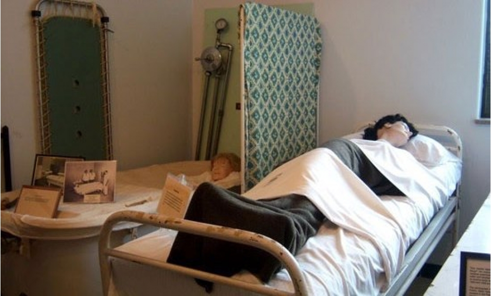 Psixiatrik müalicələr, ruhi xəstələrin müalicəsi üçün alətlər və avadanlıqlar və bir vaxtlar burada baş vermiş dəliliyi canlandıran 3D ekranlar. Bura, zəif insanlar üçün deyil - bütün bunlar Qlore Psixiatriya Muzeyindədir - Sent Cozef, Missuri, ABŞ.
