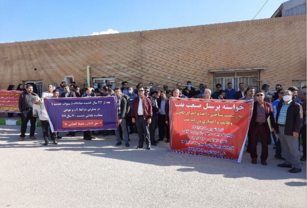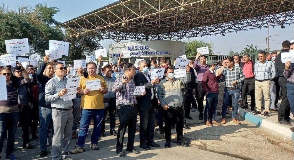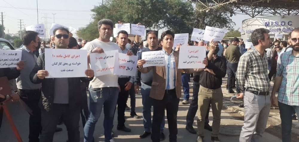 İranın Pars Neft-Qaz Şirkəti, Cənub Neft Zonaları Milli Şirkəti və bir neçə digər neft və neft-kimya şirkətinin işçiləri mövcud iqtisadi duruma, onlara verilən və yerinə yetirilməyən vədlərə etirazlarını bildirirlər.