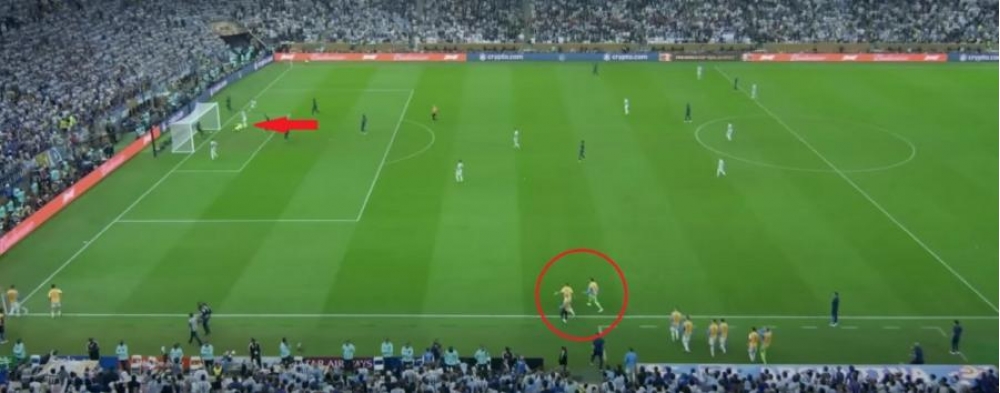 “İki sahil” xəbər verir ki, həmin an matçın 108-ci dəqiqəsində yaşanıb. Messi Fransa komandasının qapısına zərbə endirəndə Argentina yığmasının ehtiyatda olan 2 futbolçusu meydana qaçıb. Top Fransanın qapısına gedən zaman ehtiyat oyunçular meydanda olublar. Messinin bu zərbəsi qol ilə nəticələnib və Argentinanı əlavə vaxtda hesabda önə çıxıb.